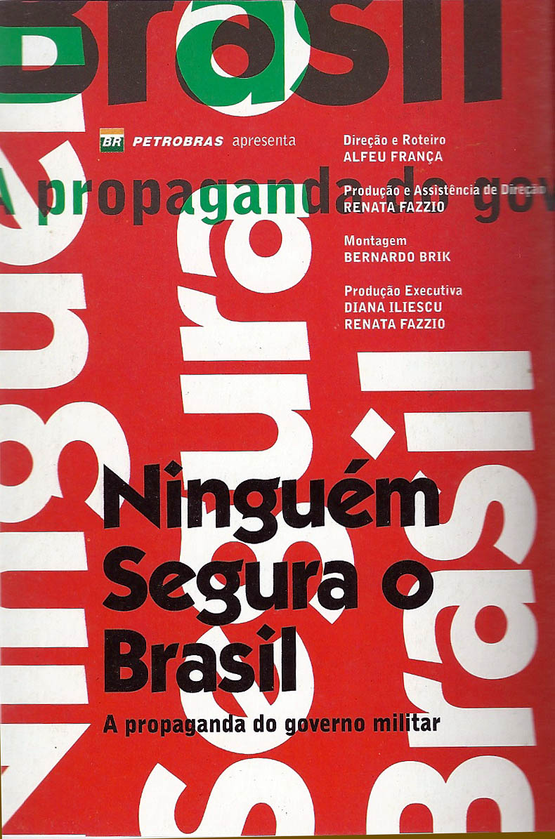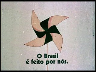Retomo essas questões depois de assistir ao média-metragem Ninguém Segura o Brasil, realizado no ano passado por Alfeu França. Depois de uma pesquisa no Arquivo Nacional e no seu acervo pessoal, Alfeu preparou uma compilação de 30 minutos com institucionais, comerciais, jingles e trechos de filmes que reproduziam a ideologia do regime militar para consumo na TV e no cinema. São inúmeros desfiles, mensagens ufanistas, clipes caretas, musiquinhas de sintetizador, narrações de Cid Moreira, conclamações contra “os trapos vermelhos do comunismo”. Uma parafernália de comunicação destinada a produzir a imagem do “Brasil grande”: um país em ritmo acelerado de desenvolvimento, nacionalmente integrado, estrategicamente seguro, com harmonia de raças, classes e faixas etárias. A negação de todo conflito e a anulação das forças sociais pelo discurso homogêneo de que “o Brasil é feito por nós”.