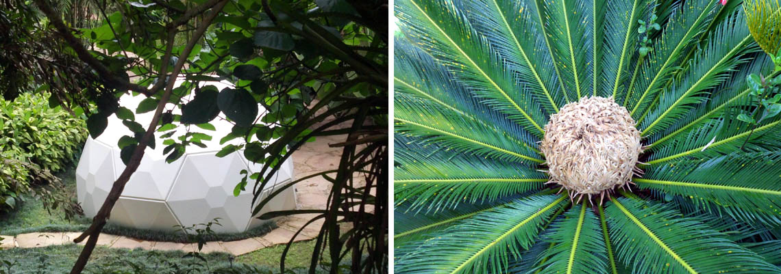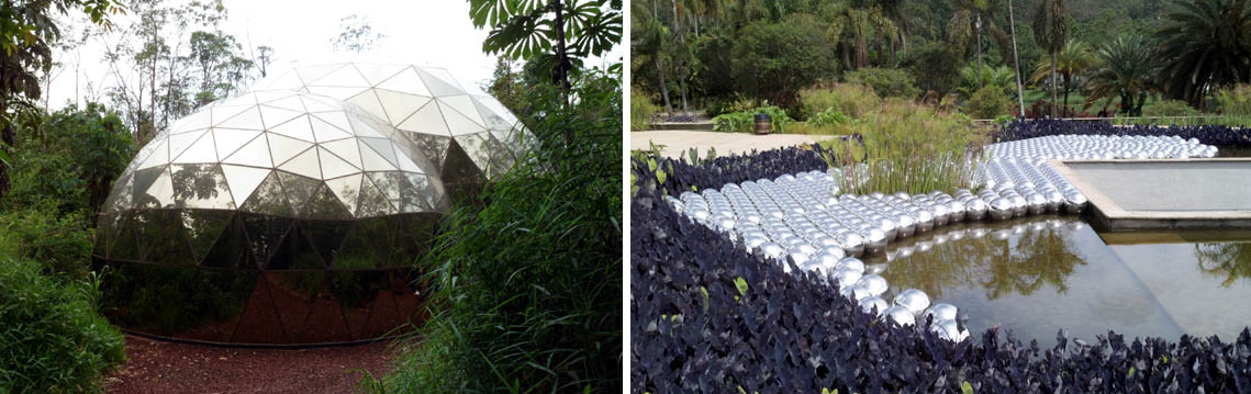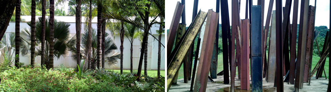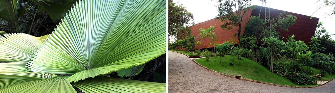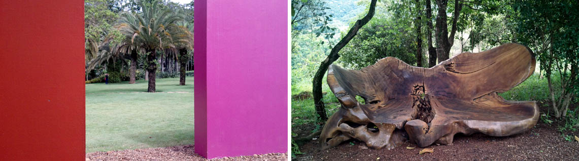 Quando saí de Belo Horizonte para Inhotim, Jean-Claude Bernardet me fez o alerta: “Aproveite as obras, mas não deixe de apreciar o jardim”. Lembrei-me dele a cada instante de deslumbramento diante, por exemplo, da diversidade das palmeiras – são cerca de 1500 espécies diferentes na maior coleção do mundo no gênero –, das flores e frutos exóticos que a gente quase toma por alguma delicada escultura, dos bancos “naturais” feitos de troncos inteiros embelezados por suas imperfeições. Tudo isso resgata uma dimensão artística da botânica e da jardinagem, muito comum nos jardins japoneses, mas aqui aditivados pela exuberância da flora tropical.