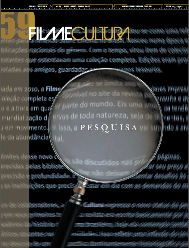 Em poucos dias estará em livrarias e no site oficial a edição número 59 da revista Filme Cultura. O tema de capa, que congrega a maioria das matérias (mas não todas!) é “Pesquisa”. Aí estão entendidas as diversas formas de pesquisa relacionadas com o cinema: pesquisa documental, de filmes, de universidades, de imagens e de mercado.