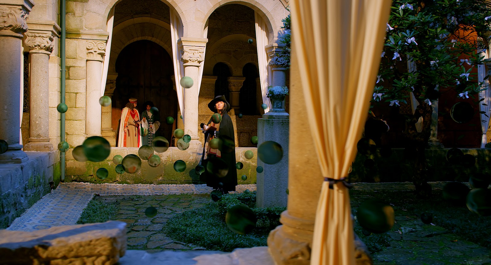 Peter Greenaway, em Just in Time, viu no recurso um ingrediente a mais para seu barroquismo digital delirante. Igrejas, claustros, museus e ruas da cidade são percorridos por longos travelings, passando por figurantes paramentados e muralhas e cortinas de textos que falam de personagens da história de Guimarães. O efeito é de uma enciclopédia folheada tão rapidamente que você não consegue reter quase nada. Mas é visualmente deslumbrante e leva a virtualidade do 3D a seus limites de expressão.