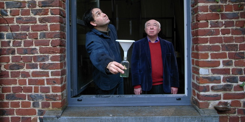 Exercícios de Desaparecimento (2011), um de seus filmes mais festejados, foi também motivado por uma perda familiar. Pazienza conta não ter reconhecido os traços da mãe quando a viu no caixão. Daí ele evolui para uma densa reflexão sobre memória, esquecimento e luto em conversas e viagens com seu amigo e professor de Filosofia, Jacques Sojcher. A estrutura tem um quê de diário pessoal. Claude e Jacques tomam aulas de sapateado, colhem e colecionam água da chuva classificando em garrafas por dia (foto no alto), descrevem em microfones tudo o que veem em viagens por Israel, China e um país africano. Tudo parece bastante solto, ainda que coerente com a proposta da obra do diretor, que é de filmar, nomear e perguntar-se sempre. Como os calígrafos que escrevem ideogramas com água nas calçadas da China para logo se tornarem invisíveis, Exercícios de Desaparecimento parece aspirar a destino semelhante: o conjunto desaparece rapidamente da nossa mente, mas a lembrança de algumas imagens forte permanece.