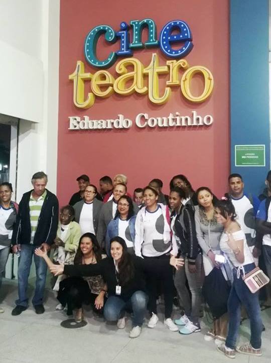 Gostei muito de conhecer esta semana o Cine-teatro Eduardo Coutinho e a Biblioteca Parque de Manguinhos. Inaugurado há pouco mais de um mês, o cinema cobra meio ingresso de 4 reais para estudantes, idosos e moradores do Complexo de Manguinhos. Mesmo assim, os programadores Beto Moreira e Tatyana Paiva têm recorrido a blockbusters 3D como estratégia de atração de um público inicial. A sala de 202 lugares está equipada com projetor Barco 2K e som digital surround 5.1. A qualidade põe no chinelo a grande maioria dos cinemas da cidade. Ontem foi dia da primeira sessão do Cineclube Manguinhos, com entrada franca e a exibição de “Jogo de Cena”, de Coutinho, seguido por um bate-papo comigo e a cineasta Cristina Grumbach, assistente e pesquisadora deste e de outros filmes de Coutinho. Havia cerca de 80 pessoas na sessão, público composto por estudantes, famílias e gente ligada ao grupo Manguinhos em Cena, que ocupa o teatro. A emoção de conversar sobre o Coutinho e sua obra era palpável no ar. Duas horas depois de terminado o filme, ainda tinha gente querendo fazer perguntas e considerações sobre o filme.
