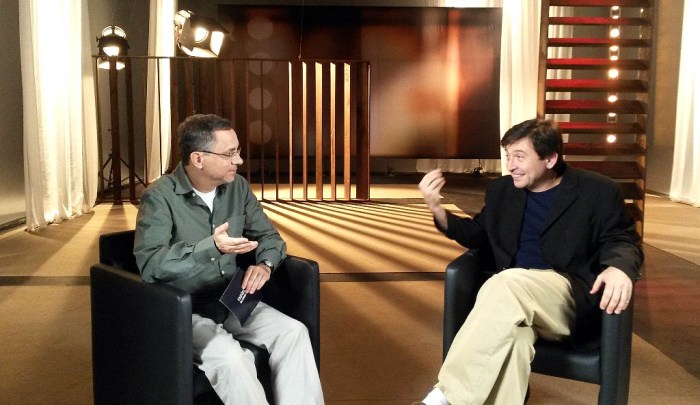 Faróis do Cinema é produzido e dirigido por Marcelo Laffitte, com direção de fotografia de Jacques Cheuiche, edição de Rafael Rolim e participação de uma equipe fera, cuja foto abaixo, tirada com o meu celular após a gravação com Joel, está longe de fazer justiça à qualidade do trabalho deles.