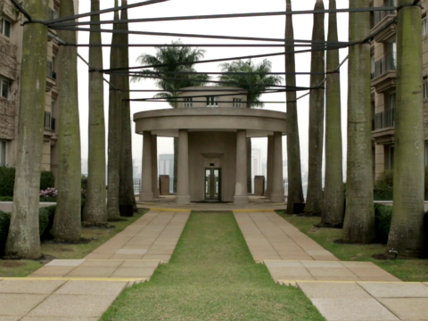 Uma câmera silenciosa explora as dependências de um condomínio de luxo em São Paulo como se enfocasse uma fortaleza medieval. A começar pelo “fosso” (as muralhas que o cercam do resto da cidade), seguido do “salão” (um shopping center que ocupa os pisos inferiores) e da “torre” (os prédios residenciais com suas piscinas, aposentos requintados e varandas espetaculares). As imagens de O Castelo, vencedor do Prêmio Itamaraty no 26° Festival Internacional de Curtas de SP, não mostram nenhum morador ou consumidor do Condominio Cidade Jardim, mas tão-somente faxineiros, seguranças, babás e outros empregados. Até aí temos apenas a exposição de uma camada privilegiada da sociedade e sua virtual ausência no cenário. Os sinais de ostentação estão lá, mas não vemos quem deles usufrui. Em si, essa conduta do filme já evidencia o abismo social brasileiro sem proferir uma palavra sequer nem produzir contrastes mais óbvios.