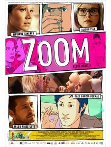ZOOM, coprodução canadense-brasileira, é um looping de metalinguagem que esvazia todas as possibilidades de relação com o real. Uma cartunista e artesã de bonecas sexuais (Alison Pill) está desenhando a história de um cineasta de filmes de ação (Gael García Bernal), que é apresentada em animação. Logo saberemos que a cartunista, na verdade, é personagem do livro de uma escritora estreante (Mariana Ximenes). Adivinhe agora de onde vem a escritora? O nó estaria completo se Pedro Morelli inserisse algumas cenas do seu próprio making of para sublinhar ainda mais a ideia de que tudo, afinal, é criação.