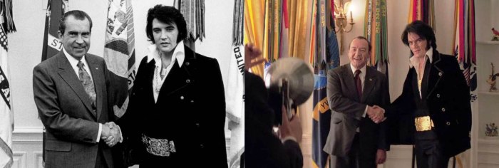 A conversa com Nixon, filmada como um duelo, ou melhor, uma tourada humorística, é tudo pelo que vale a pena esperar. Os atores, embora não se pareçam com os personagens, sustentam convictos a caracterização – especialmente o virtuosístico Spacey. Elvis e Nixon aparecem como dois direitistas infantilizados, maníacos e alienados da realidade. Figuras de comédia negra, que numa realização mais talentosa poderiam entrar para a linhagem de “Dr. Fantástico”. Do jeito que estão, causam algumas boas risadas e logo desaparecem de volta para o anedotário da História.