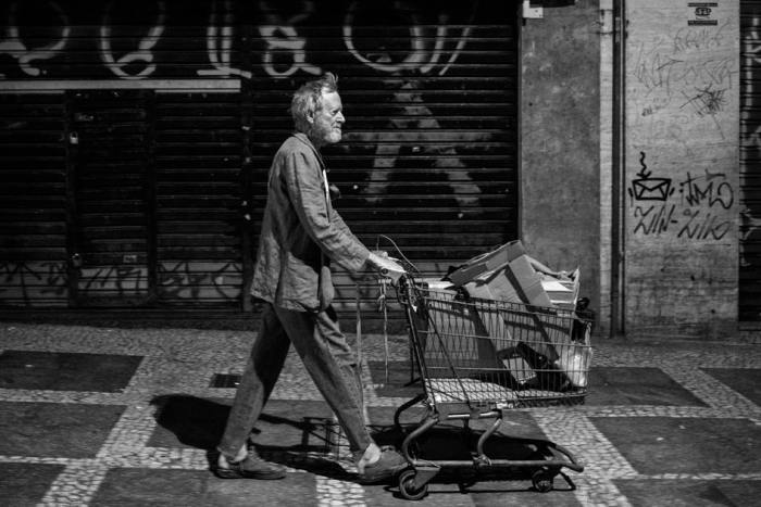 Fome, de Cristiano Burlan, talvez seja sua experiência mais desafiadora nesse campo. Ele faz um ex-professor que virou sem-teto a vagar por ruas emblemáticas e terrenos baldios de São Paulo, empurrando com grande esforço um carrinho cheio de tralhas, deitando-se em escadaria de igreja ou em folhas de papelão, exibindo-se em semáforos. O filme é parte uma coreografia entre ator e cinegrafista – performance a céu aberto no meio do povo, em preto e branco, como nos tempos do Cinema Marginal – e parte uma discussão sobre cinema e miséria urbana.