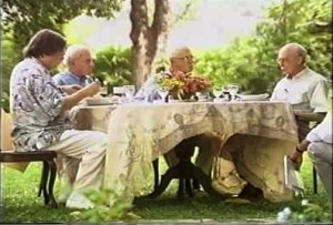 O sarau se estende pelo Museu da Chácara do Céu, o Jardim Botânico, o restaurante Plataforma (cais de Jobim), além de depoimentos isolados em locais diversos. Na edição, os temas se organizam e se contraponteiam com efeitos distintos. São enfatizadas ora as similaridades de pensamento entre eles, ora a diversidade de posturas diante da vida e do meio cultural. Cada um tem a oportunidade de contar um pouco de suas origens e formação, do seu ofício, de suas viagens, do seu credo político. A sombra do chamado fim das utopias se estendia sobre eles e os deixava um tanto desnorteados. Cada um a seu modo, eles cultivavam – e Antonio Candido ainda cultiva – a esperança num Brasil mais justo, gentil e autosustentável. Felizmente talvez, três deles não ficaram para ver o desencanto de hoje e perceber que sua geração não foi substituída por outra com estatura sequer aproximada.