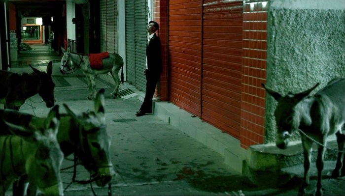 O filme oscila entre a singeleza desses animais resignados e um desejo de espetáculo atendido pelas músicas e algumas performances de pantomima e folclore. Num dado momento, as duas vertentes se encontram num inusitado musical equino. Observação de uma cidade e ao mesmo tempo arquitetura de sentidos críticos e afetivos sobre ela. Divertimento e esquadrinhamento. Standards americanos e novena de São José.