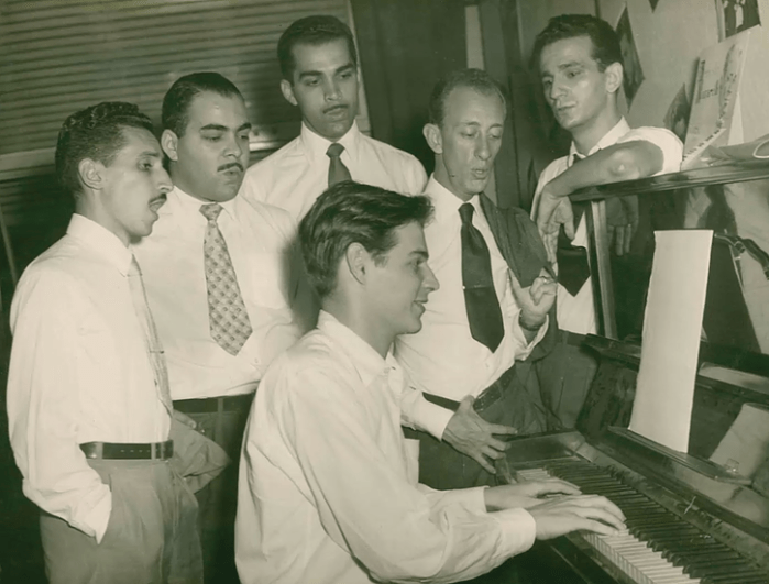 O grupo original com Tom Jobim ao piano