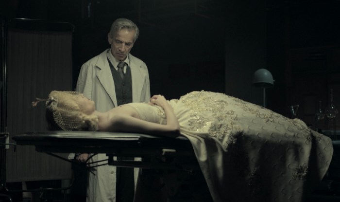 EVA NÃO DORME aborda esse assunto de maneira concisa, nos moldes de uma peça teatral dividida em três atos. No primeiro, testemunhamos os cuidados com que o embalsamador prepara o corpo de Evita para o velório e suas reflexões fisiológicas sobre a expressão dela. No segundo, o tumultuado transporte do ataúde no dia do roubo. No terceiro, passado já em 1970, vemos o general e ex-presidente Aramburu sequestrado pelos montoneros e instado a revelar o paradeiro do cadáver. Uma moldura abre e fecha o filme, trazendo Gael García Bernal num pequeno papel como o futuro almirante Emilio Massera, personificação do ressentimento político e do ódio de gênero que os militares nutriam pela primeira-dama peronista.