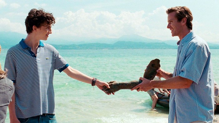 Essa ilha da fantasia empoada de charme e gentilezas, onde as mulheres não têm direito sequer a existir como personagens, pretende evocar o homoerotismo grego, apenas invertendo os papéis. Elio, o garoto, seria o “erastés” (amante) e Oliver, o “eromeno” (amado). A referência é posta logo nos créditos de abertura com a estatuária helênica e reiterada com o resgate de uma estátua da Antiguidade.