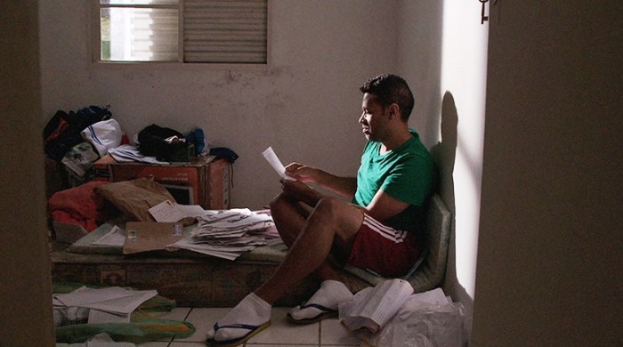 CARTAS é mais um documentário da dupla Caio Cavechini-Carlos Juliano Barros, que já nos deu os ótimos Carne Osso, Jaci – Sete Pecados de uma Obra Amazônica e Entre os Homens de Bem. O eixo narrativo são os contatos de Barros com Laéssio em busca de um perfil jornalístico, que acabaria saindo no ano passado na BBC Brasil. As cartas trocadas entre os dois, muitas delas com Laéssio na cadeia, além de conversas pessoais sobre o filme, abrem uma fresta para o processo de construção do documentário. Em dado momento, Laéssio imagina que suas sucessivas prisões (“minha vida é um déja vu carcerário”) ajudam o filme a ficar mais interessante.