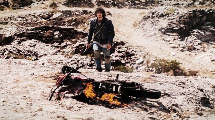 Para isso conta a fotografia esplêndida de Gustavo Hadba em tonalidades góticas, cores dessaturadas que namoram o preto e branco, e ávida por tomadas virtuosísticas aproveitando-se das locações impressionantes e da iconografia motoqueira. É bem verdade que muito da sensação de velocidade e rudeza vem não propriamente da filmagem, mas de uma montagem acelerada e de um trabalho de som (música e ruidagem) nunca menos que hiperbólico. Em vários momentos, aliás, a busca do impacto sonoro soa como mero blefe para manter a plateia refém do ritmo pretendido. O simples acender de um lampião pode vir com um estrondo.