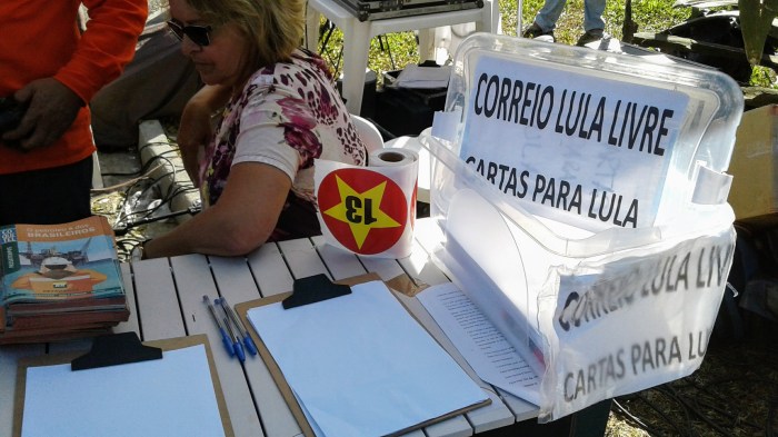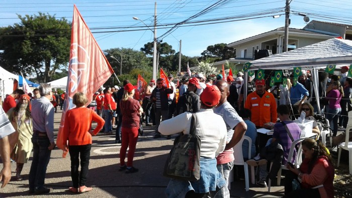 No intervalo para o almoço, todos se dirigem para uma casa alugada a uma quadra dali, onde é preparada e servida a refeição. Uma grande fila se forma sob o sol – e logo será sob o frio intenso do inverno curitibano, se Lula permanecer preso. Dois pequenos foodtrucks oferecem alternativas sanduicheiras, além de uma moradora local que apregoa pastéis caprichados a 5 reais e corte de cabelo a 15.