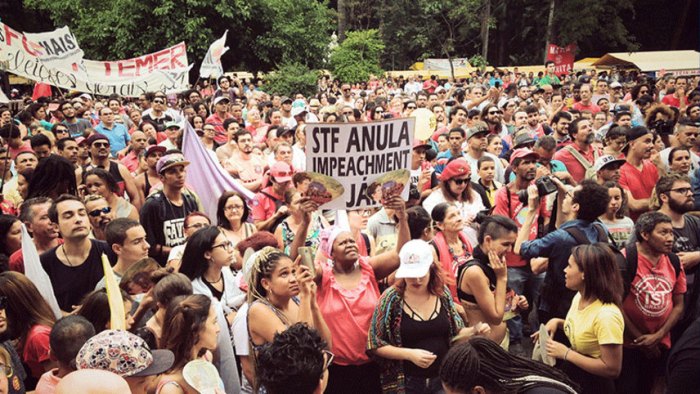 “Embora a narrativa central seja o processo que leva ao impeachment, visto pelos movimentos populares, há uma segunda linha narrativa que discute o papel da esquerda nisso tudo, destacando principalmente seus erros. Nesta discussão sobre o papel da esquerda no processo há a presença de pessoas como a Marilena Chauí, o Guilherme Boulos, o Jessé de Sousa, o (João Pedro) Stédile e alguns meninos do Levante Popular da Juventude”, esclareceu Tapajós ao Almanaque da jornalista Maria do Rosário Caetano. E prosseguiu: “Cabe, portanto, dizer que o nosso filme tem lado, é frontalmente contra o impeachment e não está muito interessado nas manobras daqueles que vivem dizendo que ‘respeitaram a Constituição’”. Assista a um teaser do documentário.