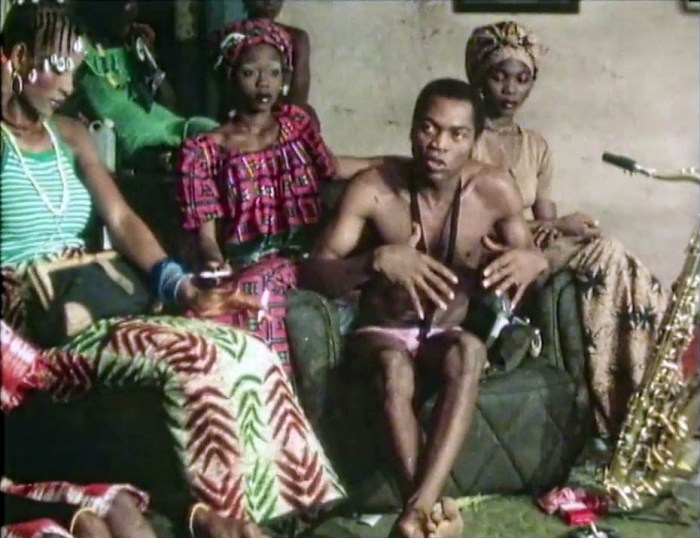 Em um dos excelentes materiais de arquivo coletados por Joel Zito Araújo em MEU AMIGO FELA, Fela Kuti chega a uma sala, tira toda a roupa exceto uma sunga minúscula, senta-se numa poltrona e, cercado de algumas de suas esposas e seu saxofone, diz coisas como: “No caso da África, a música não pode ser feita pelo prazer. Tem que ser pela revolução”. A cena condensa todo o espírito de um personagem tão fascinante quanto contraditório (ao menos para os nossos padrões).