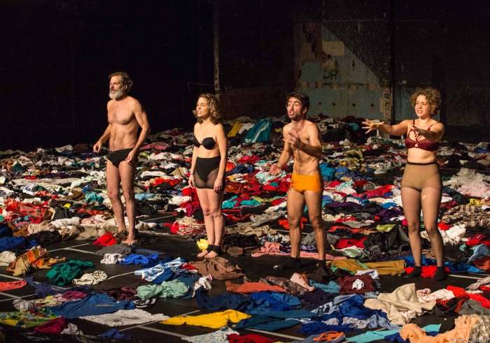 O mundo é um horror oferecido diariamente como espetáculo. Na mídia, na guerra, nas catástrofes, na vulgaridade perversa dos homens. É sobre isso que fala (ou melhor, grita) PANORÂMICA INSANA (PI), a peça que Bia Lessa encena a partir de textos de Julia Spadaccini, Jô Bilac e André Sant’anna. Estreou semana passada no novo Teatro Prudential, no Rio, engolfando quatro atores deslumbrantes num mar de roupas.