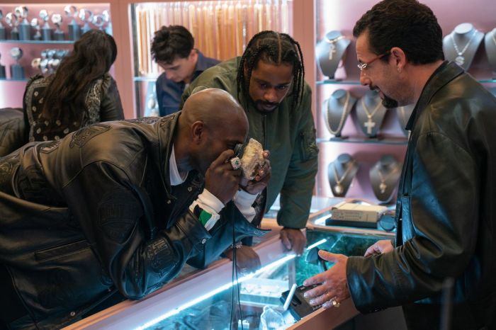 Adam Sandler, o notório comediante, confirma ser ótimo ator dramático, como já havia demonstrado em Embriagado de Amor, de Paul Thomas Anderson. O Oscar, no entanto, o esnobou pelo papel desse perdedor nato, propenso a entrar em todas as confusões possíveis, confiando que um milagre o salvará no último minuto. Viciado em apostas, Howard negocia a opala com o astro do basquete Kevin Garnett (fazendo uma versão ficcional dele mesmo) e vive momentos de estresse máximo em várias frentes. Uma delas é com a sua funcionária e amante Julia (estreia da sensual Julia Fox, ex-estilista, ex-modelo Playboy e ex-dominatrix).