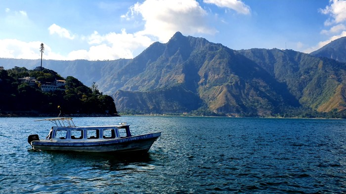 A maior atração natural da Guatemala é o Lago Atitlán, no centro-sul do país. Esse pequeno mar de águas mansas e azulíssimas é rodeado por montanhas e três majestosos vulcões extintos: San Pedro, Atitlán e Tolimán. No idioma Nahuati, Atitlán significa “entre as águas”. O explorador e naturalista alemão Alexander von Humboldt o chamou de “o mais belo lago do mundo”.