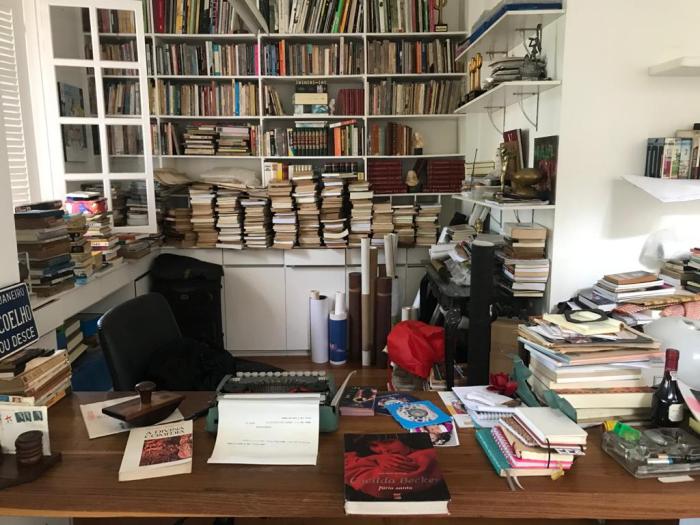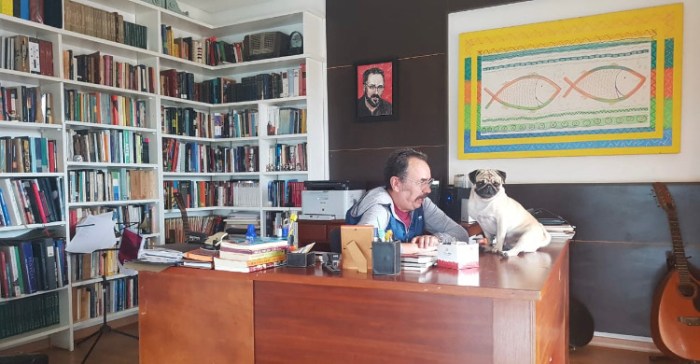 “Nesses tempos de claustro forçado, meu canto de reflexão. Meus livros, minha música, meu computador, meu cão. Um microcosmo pra aguentar o confinamento”. Brasília, DF