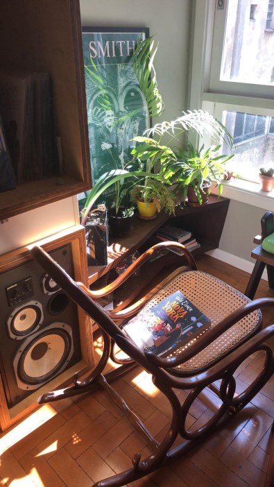 “A necessidade de tomar sol nesse período fez com que eu invertesse essa cadeira, que era da minha vó, e descobrisse que um dos melhores lugares da minha casa é este, onde posso sentar defronte à janela para ler, trabalhar, escutar música, refletir…”. Porto Alegre, RS