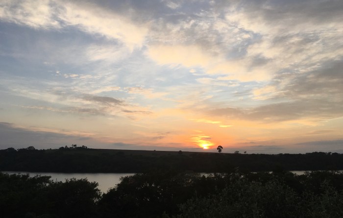 Desde que cheguei, no início da quarentena, na chácara do meu irmão no Rio Paranapanema, eu fotografo, com celular e sem filtro, a mesma paisagem em variadas horas do dia. Nas fotografias, a luz nunca é a mesma, não existe uma única paisagem igual, a natureza não se repete. Não existe monotonia onde existe luz. Hora de se recolher, para aguardar a chegada de outro dia”. Piraju, SP