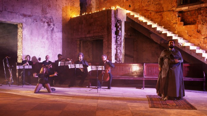 Como fantasma do passado a nos lembrar das atrocidades da guerra, Mathilda é uma criação admirável de Gabriela Geluda, dona de uma beleza que se estende do físico para a voz e a expressividade dramática. Luciano foi um casting perfeito para o papel do árabe. O Ensemble Jocy de Oliveira executa à perfeição a desafiadora partitura da autora, que se inspira na musicalidade de várias épocas e latitudes. Vale ressaltar também o requinte dos figurinos de Ticiana Passos.