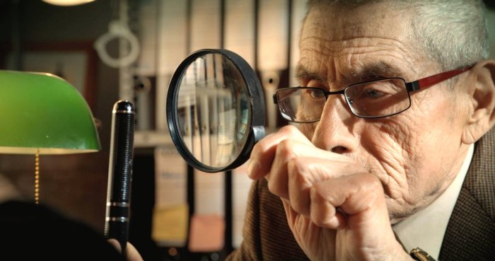 É preciso suspender a descrença para ver o filme como um documentário. Desde as cenas iniciais, no escritório do detetive, a cenografia e a iluminação de fime noir, a edição em cortes clássicos, a performance dos idosos, tudo remete ao estatuto da ficção. Na casa de repouso, a câmera se move com liberdade por corredores e quartos, seguindo o nosso infiltrado à maneira de A Pantera Cor de Rosa, sempre com tomadas em tripé ou carrinho, muito bem planejadas e enquadradas. A crer que tudo isso era feito como se fosse um simples registro do dia-a-dia da instituição, sem que a trama fosse de conhecimento do staff da casa, então estamos diante de um milagre em matéria de estratégia documental.