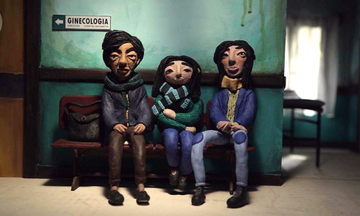 O estilo de animação é bastante peculiar, algo que eu chamaria de stop-no-motion. Os bonecos confeccionados por Mariana Ardanaz permanecem imóveis entre alguns efeitos de luz e lentos deslocamentos de câmera. Essa imobilidade reforça a ideia de paralisação diante da máquina judicial, mas não impede que as figuras comuniquem com eficiência o que existe de dramático na situação. O que prejudica um pouco o nosso envolvimento, a meu ver, é a narração reiterativa e monocórdica da veneranda cantora Liliana Herrero. Essa participação, contudo, reflete o engajamento de Liliana no peronismo e no movimento de mulheres argentinas.
