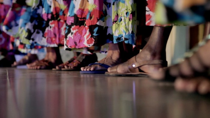 Betse transitou entre a turnê, patrocinada pelo Sesc, e um quilombo maranhense cuja comunidade vive da quebração do coco. Ao abranger o lado artístico, a política e a economia das quebradeiras, seu filme amplia as abordagens do tema já feitas pelo cinema. Quebradeiras, de Evaldo Mocarzel, por exemplo, era um ensaio poético de grande beleza, que evitava a informação convencional (leia aqui). Encantadeiras incorpora cenas de outros filmes sobre essas mulheres fortes e cativantes, incluindo até mesmo um trecho do curta Maranhão 66, de Glauber Rocha, em que o então candidato a governador José Sarney exaltava o babaçu maranhense.