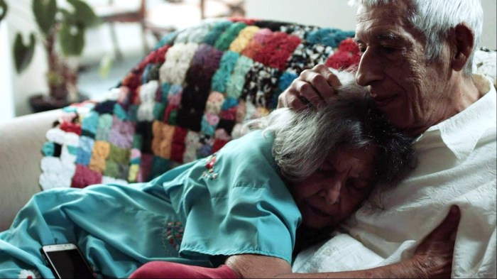 Aos 80 e poucos anos, Conceição e Orlando Senna estão deitados na cama, filmados de corpo inteiro a partir dos seus pés. Ela está de calcinha e camiseta. Ele tem as mãos frias sendo aquecidas pelas dela. Mais adiante, a cena retorna no ponto em que ela fala com humor de sua perna “biônica”, remendada com um implante de titânio: “Está valendo uma fortuna. Se algum assaltante souber, ó”. Esses dois momentos ilustram bem o que Lara Belov e Jamille Fortunato nos oferecem nesse belíssimo ensaio de amor sobre o casal. Um carinho curtido em quase 60 anos de convivência íntima e artística, somado à mais pura entrega de si a um projeto de documentário.