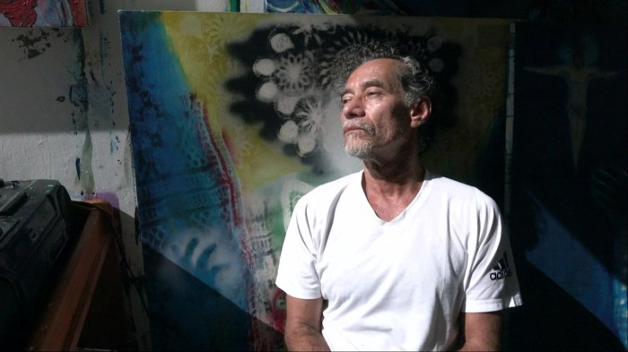 Os gestos recorrentes de abrir as janelas – de uma delas vê-se o Corcovado, o Redentor, que lindo – ou subir a um pequeno terraço dizem da ânsia por evasão de quem tem o corpo trancado em casa e a cabeça lá fora. Chico tem algo de clown nas suas performances domésticas, eventualmente incrementadas por acelerações na imagem e jump cuts (saltos de edição) cômicos. Em outros momentos, é capaz de comover com projeções sobre os móveis, inclusive de filmes de família.