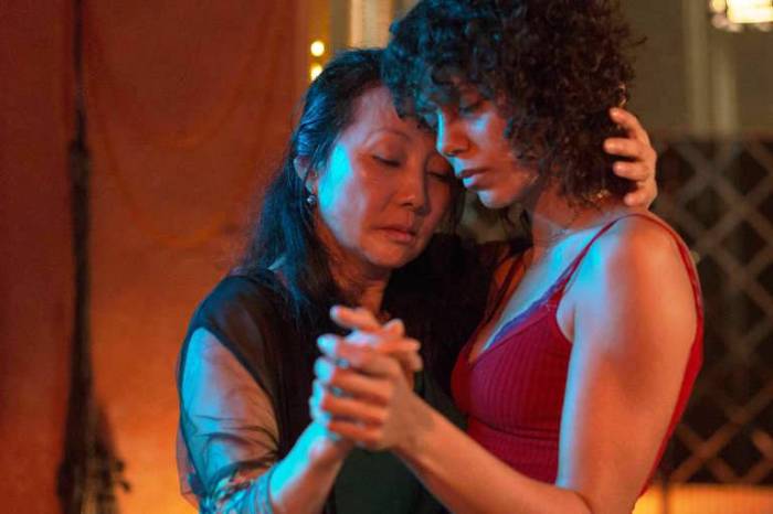A relação entre Pilar e Shin é construída a conta-gotas com extrema sutileza. A distância cultural, de classe e de idade é insinuada por uma constante interposição de pórticos, treliças e até mesmo sombras entre as duas, afora boa parte do filme em que elas contracenam em planos separados. Daí a beleza particular da sequência culminante da dança, quando ambas se encontram no mesmo plano e sem mais nada a isolar uma da outra.
