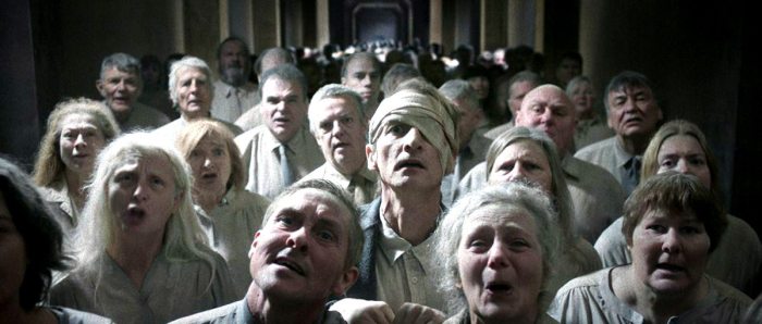 Neste primeiro longa de Jonas Kærup Hjort, a angústia existencialista ganha uma forma expressionista, inspirada talvez pela biomecânica do teatro de Meyerhold, em que a ação física pretende exprimir estados interiores. Os atores se batem em trabalhos corporais intensos quando não estão congelados em composições simétricas nos cenários minimalistas do misterioso prédio. Os enquadramentos rigorosos e a palheta restrita de cores nos conduzem por uma jornada tão soturna quanto intrigante.