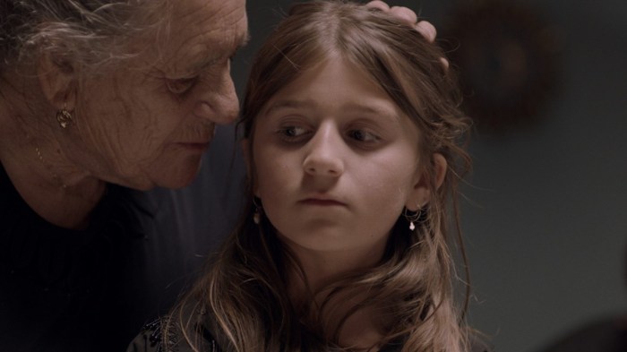 A história é quase toda centrada em Salomé, a menina que viaja para uma minúscula aldeia de Portugal, para passar as férias escolares com a avó (Ester Catalão), com quem, lembramos, tem um genuíno afeto. É a relação das duas personagens que interessa a Cristèle, mas a construção das cenas e o tratamento dado a elas engendra uma segunda narrativa, cuja ênfase é muito mais atmosférica, furtiva e enigmática. Interessa ressaltar a ligação emocional muito forte e terna entre neta e avó, assim como a dicotomia entre o espírito livre das duas e o comportamento fossilizado, primitivo, dos moradores do lugar. A diretora cria todo um mundo feito de muxoxos, ruídos, silêncios, tempos estendidos, palavras ditas e não ditas, muito parecido com aquele experimentado nos dois filmes de Lucrecia Martel mencionados. Há todo um clima funesto criado pelas mortes vivenciadas no filme, clima depois acentuado pelas mesquinhas discussões sobre quem deve arcar com as despesas do rito fúnebre da falecida avó.
