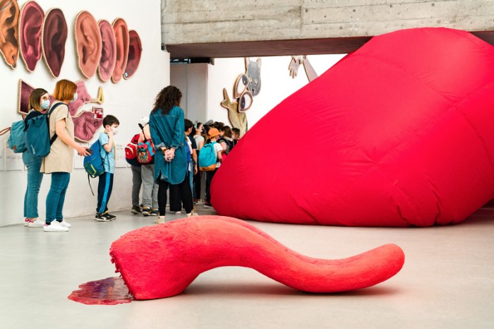 Na Bienal de Veneza de 2022, o pavilhão brasileiro acolhia os visitantes por uma orelha mas, em certos momentos, também os expulsava pela outra. A exposição partia de mais de 250 expressões populares que são figuras de linguagem baseadas no corpo, muitas das quais inspiravam esculturas, fotografias e uma videoinstalação. A entrada e a saída, por exemplo, representavam “entrar por um ouvido e sair pelo outro”. Uma das obras, que dava título ao pavilhão, era Com o Coração Saindo pela Boca, um coração inflável que, de tempos em tempos, emergia de uma boca no teto e progressivamente ocupava quase todo o espaço da sala. O público era obrigado a negociar sua posição ou mesmo deixar o recinto.