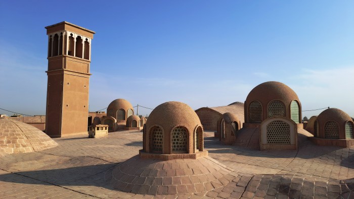 A fantástica arquitetura iraniana tem uma de suas melhores e mais concentradas vitrines na cidade de Kashan, localizada 250 km ao sul de Teerã. A região é tida pelos estudiosos como um dos mais antigos centros de civilização da pré-história. Alguns afirmam que os reis magos que acorreram a Belém com presentes para Jesus teriam vindo de Kashan.