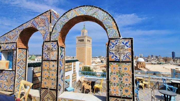 Em matéria de arquitetura, Túnis tem poucos arranha-céus e um casario que mescla influências árabes e europeias. As ressonâncias históricas são muitas, do domínio dos impérios romano e otomano à ocupação francesa mais recente. O francês, por sinal, continua sendo uma segunda língua, amplamente utilizada pelo povo. A poucos quilômetros da capital ficam as ruínas de Cartago, sede de toda uma civilização.