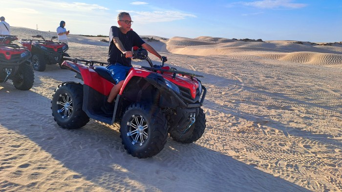 Por fim, chegamos à fervilhante Douz, chamada de Porta do Saara. Era dia da feira semanal, o que colocou as lentes do meu celular diante de um desfile inestimável de tipos humanos, vestes tuaregues, turbantes beduínos e barracas de tudo o que se possa imaginar – de tênis a cabeças de camelo. Além de desfrutar de um hotel primoroso, onde eu parecia ser o único hóspede (e alojado na “villa” número 13!), foi em Douz que fiz meu passeio pelas dunas do Saara a bordo de um quadriciclo. Vejam como ficou essa sequência com a trilha sonora de Mad Max.