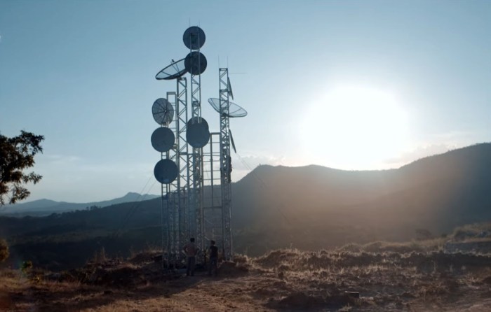Em chave desdramatizada e com um apego às vezes excessivo ao tempo real das cenas, vemos Ana tentando vencer a incomunicabilidade com a irmã e compreender o que se passa ali. Os celulares não pegam direito, e os animais parecem indiferentes à presença humana (a vaca na estrada, o cachorro sobre a mesa). As gravações em vídeo de Ana, muito frontais e cruas em preto e branco, fazem o contraponto tecnológico com o enigma da antena. Mais adiante, vão virar uma videoinstalação num museu de Brasília.