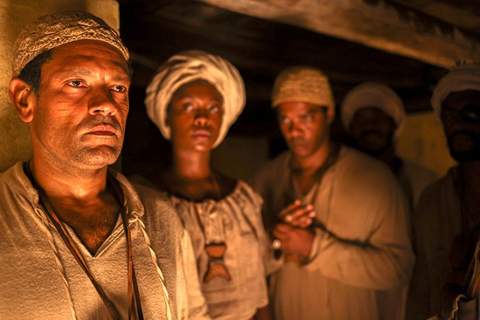 O roteiro de Manuela Dias privilegia, de início, a apresentação das situações: os muçulmanos letrados e organizados nos intentos de juntar dinheiro para comprar a alforria do maior número de companheiros, construir uma mesquita e afirmar sua fé em terra brasileira; os umbandistas, mais voltados para seus rituais e para a sabedoria ancestral; os católicos, associados ao poder escravocrata; e o casal vivido por Rocco Pitanga e Samira Carvalho, brutalmente separado na África e reunido de novo no Brasil.
