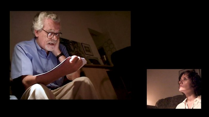 Junto a ele estavam os amigos e colaboradores Cristiana Grumbach, que assina a direção e a montagem do curta, Eliska Altman, Renata Baldi, Geraldo Pereira e Fernando Fragozo. Cristiana editou o filme como um mosaico de telas divididas, ressaltando a interação do sexteto através das respectivas câmeras. O áudio transita da recitação alternada para ensaios de simultaneidade e cacofonia.