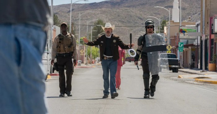Joe se candidata à prefeitura contra a reeleição do atual prefeito (Pedro Pascal). À medida que a disputa eleitoral avança e a contenda pessoal dos dois adversários ganha proporções de confronto direto, o filme perde completamente as estribeiras e se torna uma grande bagunça narrativa. Jovens wokes despejam sua culpa branca em manifestações, um louco de aldeia entra na mira do xerife e este se revela um monstro puro e simples.