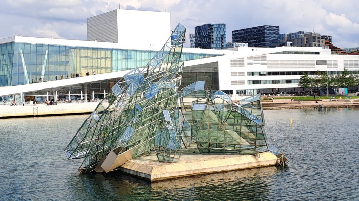 Muita coisa mudou desde 1997, quando lá estive pela primeira vez. O que mais saltou aos olhos foi a área central, à beira do Oslo Fjord, que então era um tanto baldia. Agora ali se erguem três dos maiores orgulhos arquitetônicos e culturais da Noruega. O mais vistoso é a Opera House, projetada pelo estúdio de arquitetura Snøhetta, que se assemelha a um barco ancorado à margem do fiorde. Suas rampas de mármore oferecem belas vistas sobre a cidade, e o interior chama atenção pela bem proporcionada combinação de mármore, vidro e madeira – esta, a tradicional matéria-prima das casas norueguesas. Um tour guiado me forneceu um relance do salão principal e dos bastidores.